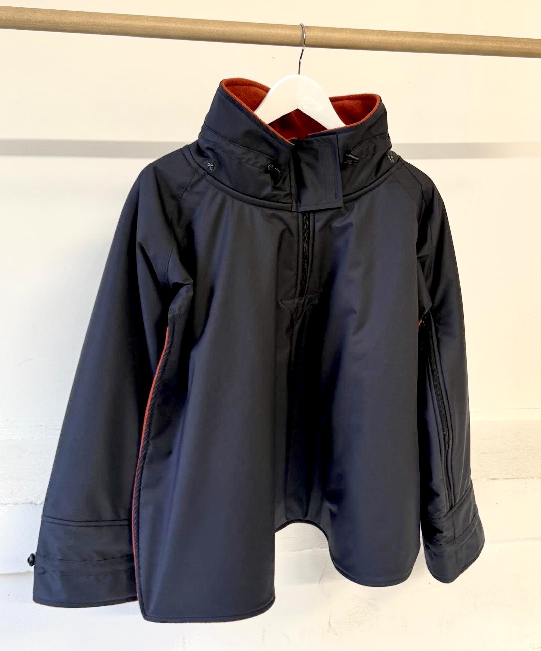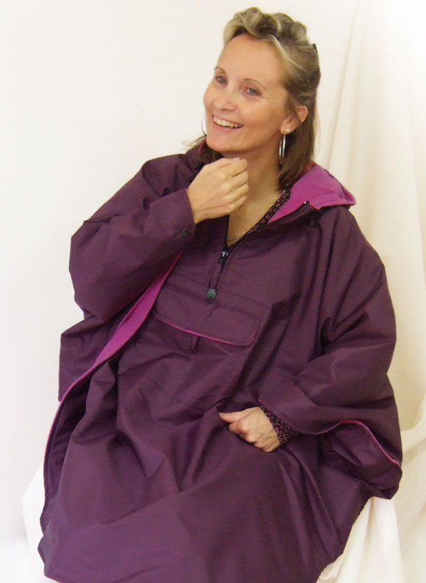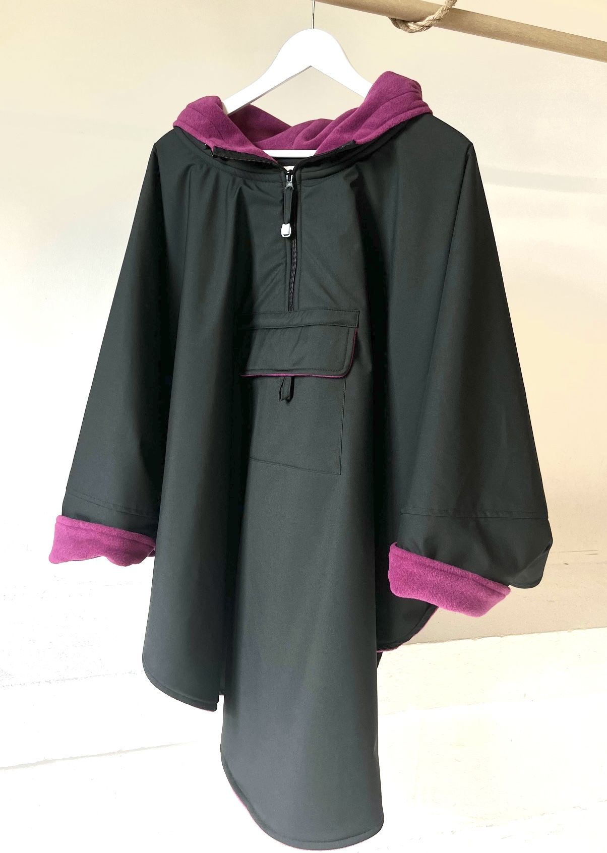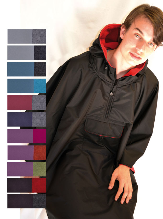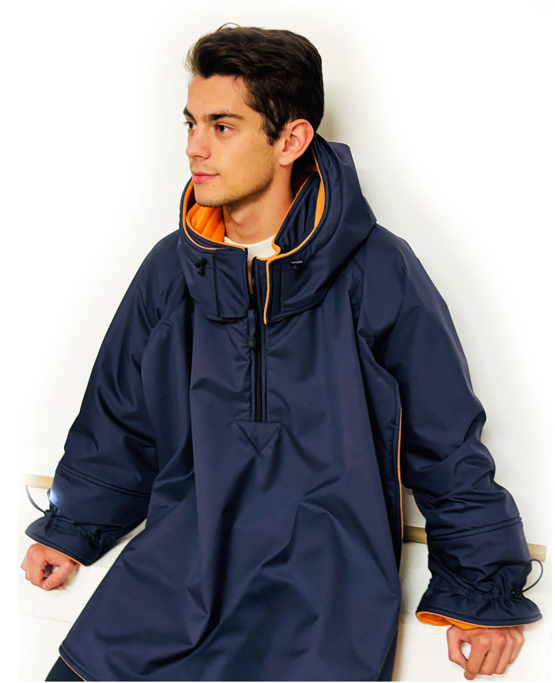 Impermeable, cortaviento, forrado en polar 300 g/m². mangas murciélago, completamente con cremallera bajo los brazos (facilidad para vestirse), espalda más corta, puños cerrados con tiras...