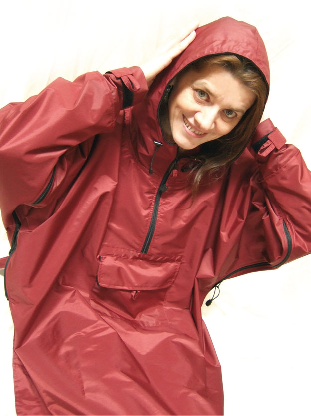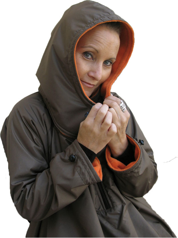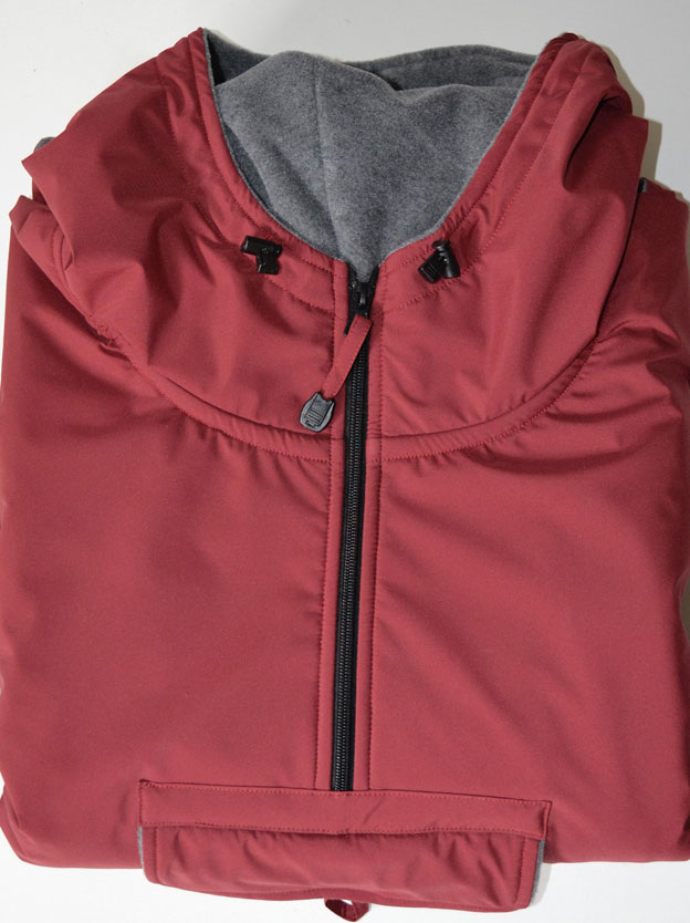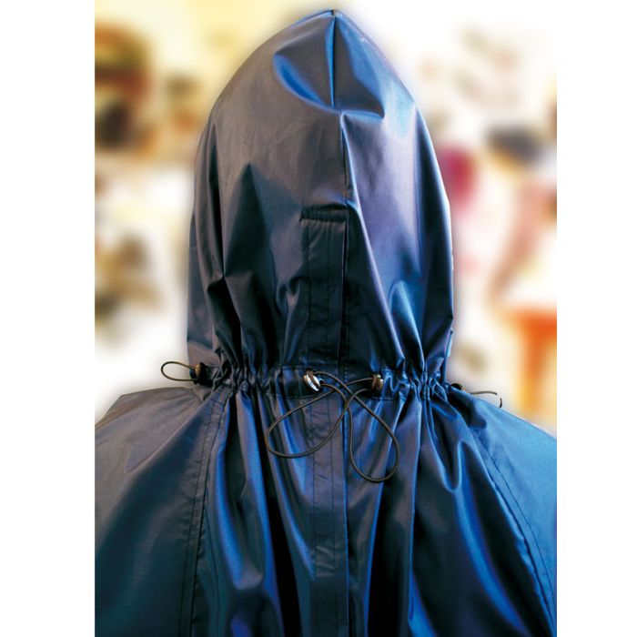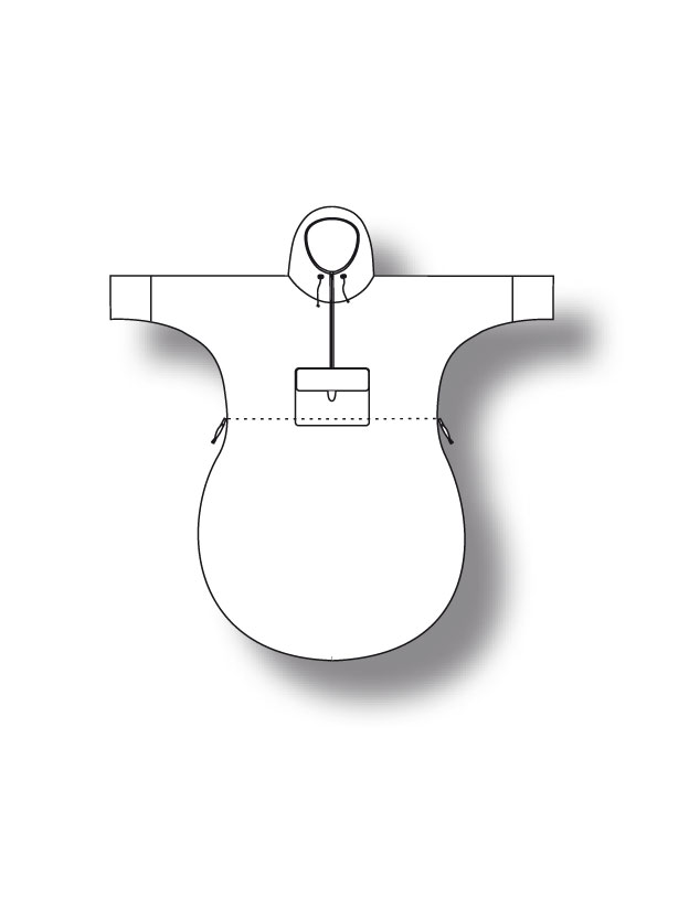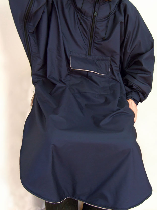 Prenda de exterior (sin mangas) impermeable, cálida y confortable, muy fácil de poner. Cuello con cremallera en el frente, espalda más corta, capucha con cordón de ajuste y tope, bolsillo frontal...