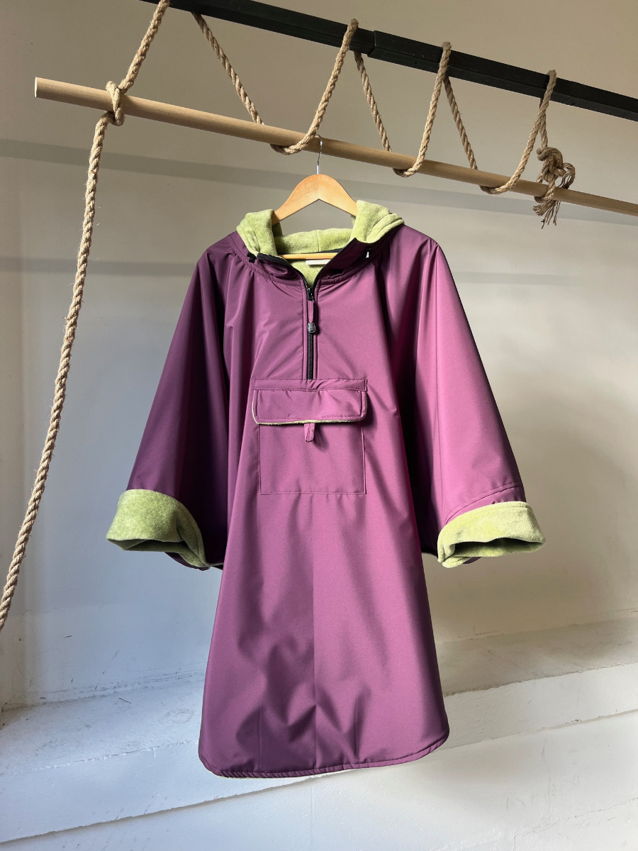 Prenda adaptada para asiento tipo concha, impermeable, cortaviento, forrada en polar 300 g/m², que envuelve los brazos y cubre la parte delantera del cuerpo, con cremallera bajo los brazos, espalda...