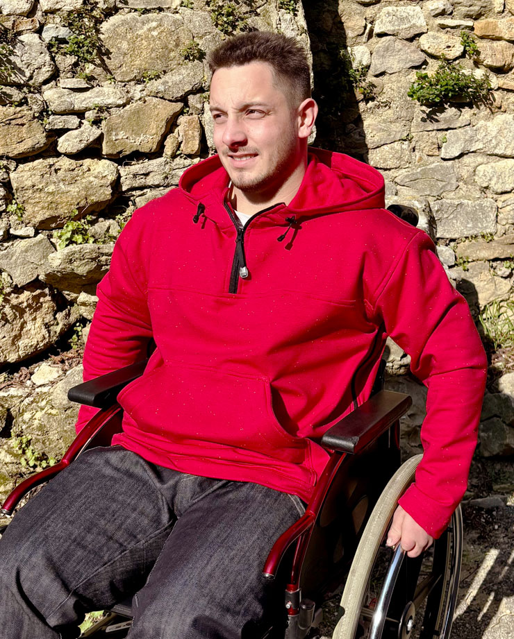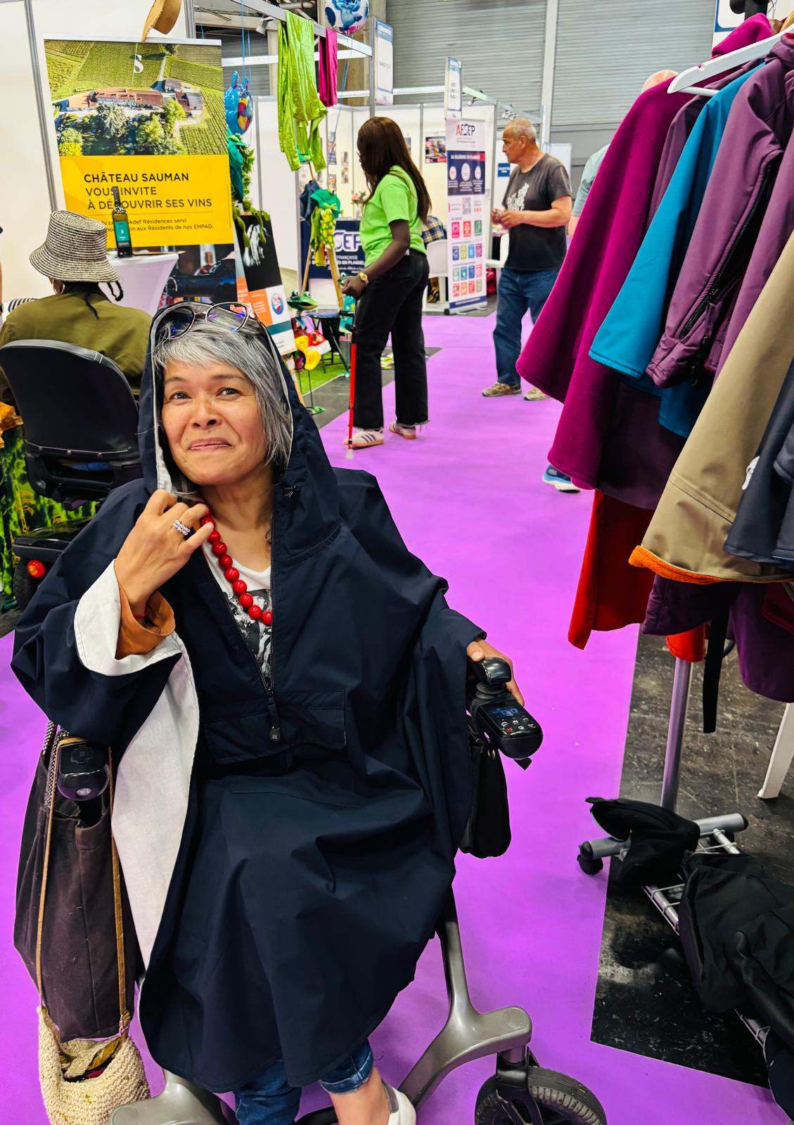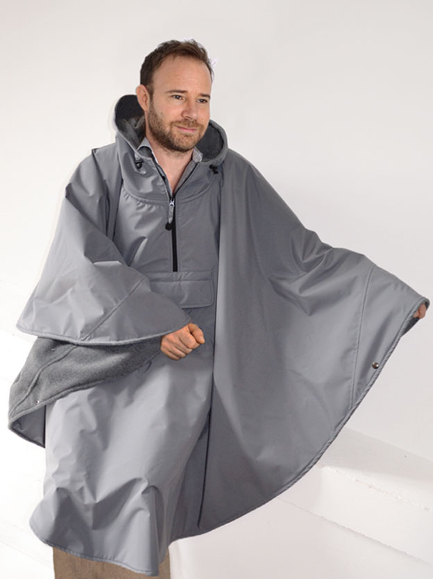 Capa impermeable muy grande forrada de polar para silla eléctrica, muy envolvente, que protege los pies y vuelve a cubrir la parte posterior de las piernas. Gran capucha que puede contener el...