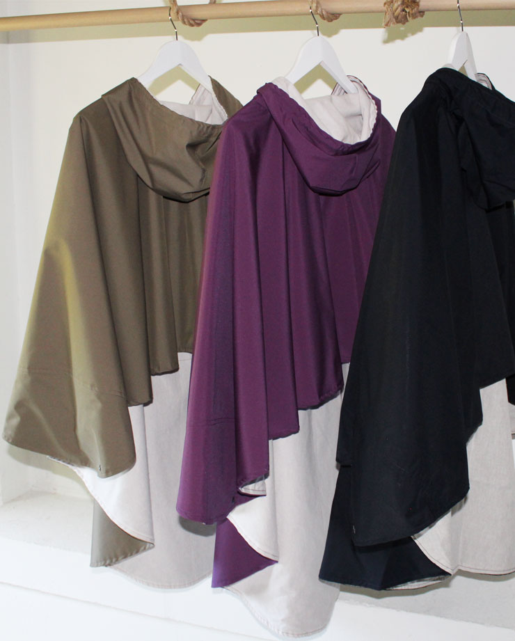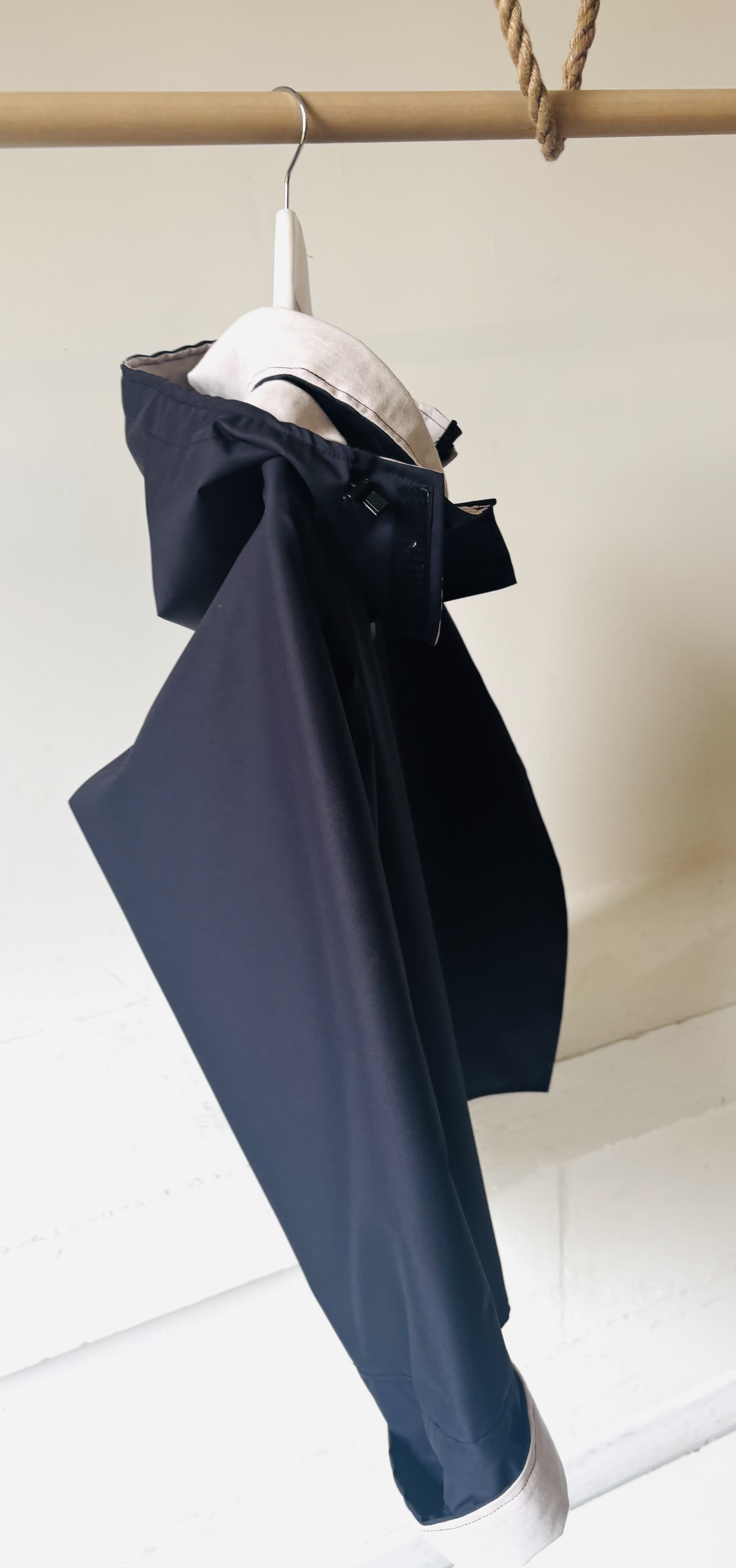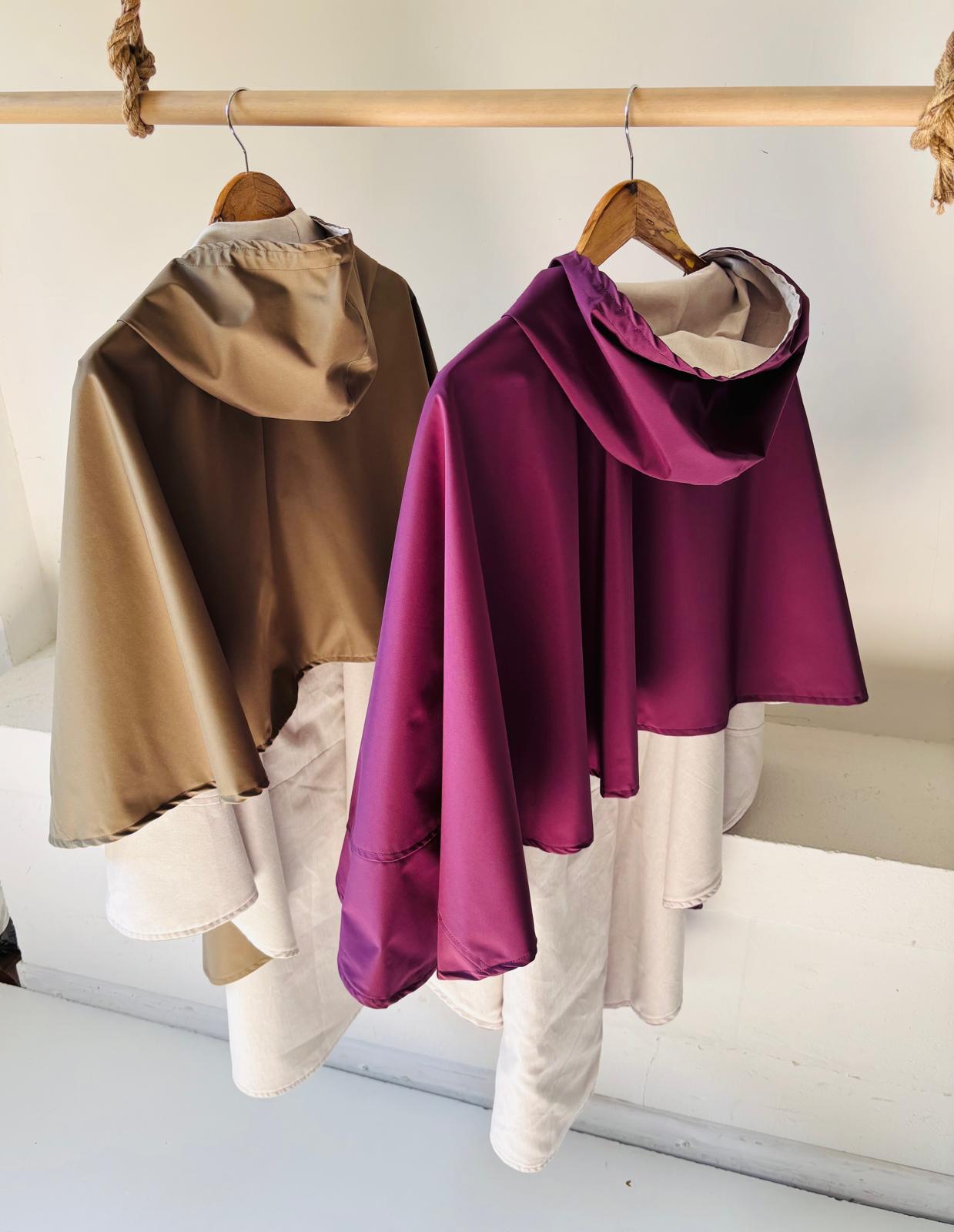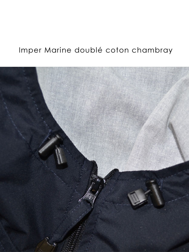 prenda de exterior impermeable con recubrimiento en el reverso, cortaviento y transpirable, forro de algodón pastel chambray. Muy fácil de poner.