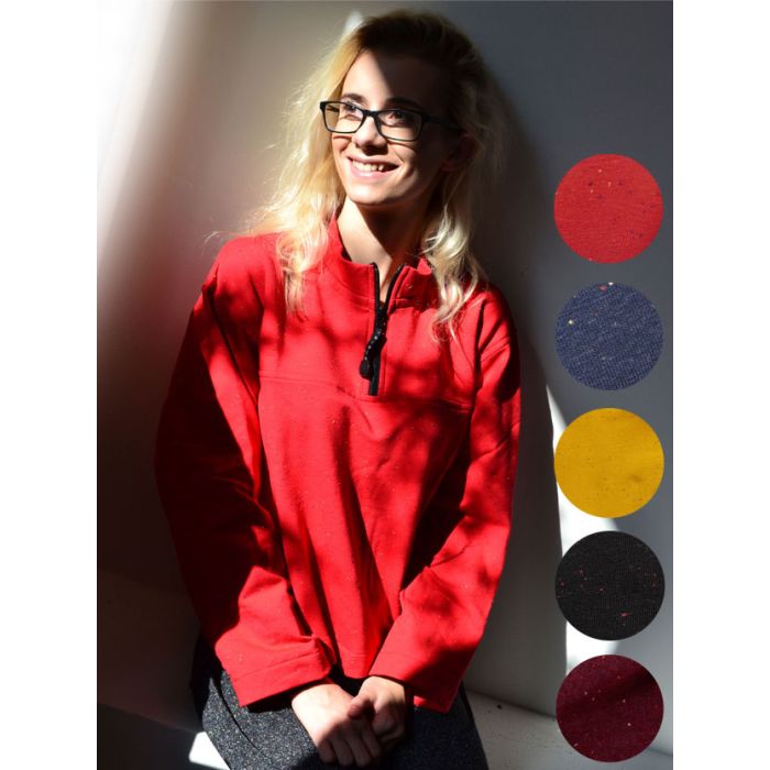 Sudadera de forro polar de 240 g/m². Cremallera central delantera y cremalleras bajo los brazos hasta las muñecas. Colores jaspeados, 100 % poliéster. Talla XS = 14/16 años