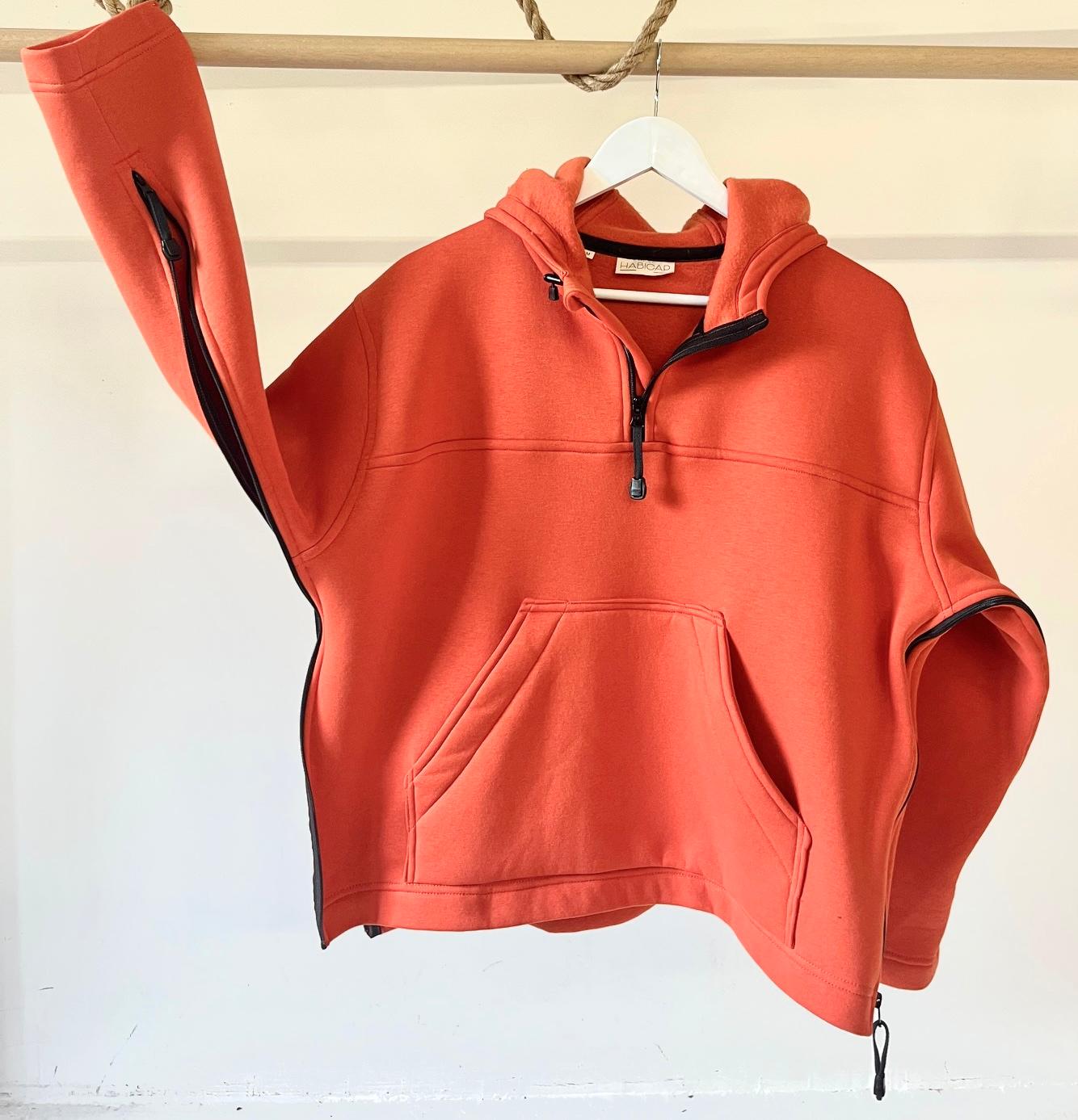 Sudadera con capucha y bolsillo delantero para las manos, disponible en 2 grosores de felpa. cuello con cremallera en el centro delantero y bajo los brazos hasta las muñecas (puños cerrados unos 6...